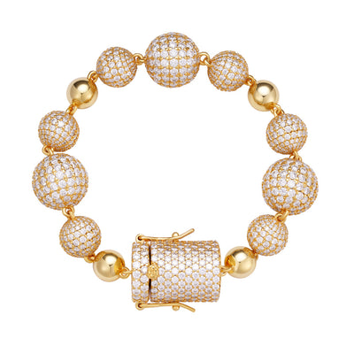 Sterling Silver Round Moissanite Bead Ball Designer Chain 8.5 Inch Mens Bracelet GP 45-3/4 Cttw