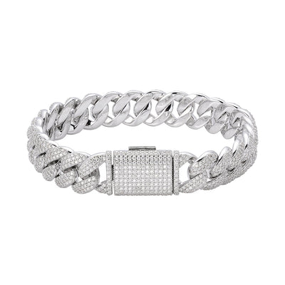 Sterling Silver Moissanite 12mm Cuban Bracelet 8 Inch RP 7-3/4 Cttw