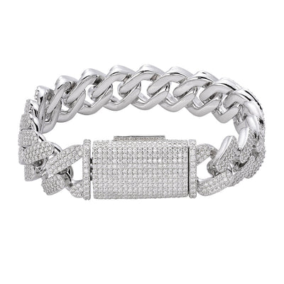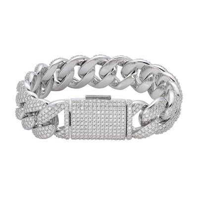 Sterling Silver Moissanite18mm Miami Cuban 8.5 Inch Mens Bracelet RP 17-1/3 Cttw