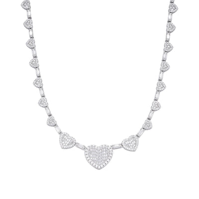 Sterling Silver Round Baguette Moissanite Heart Designer 18 Inch Necklace RP 14-5/8 Cttw