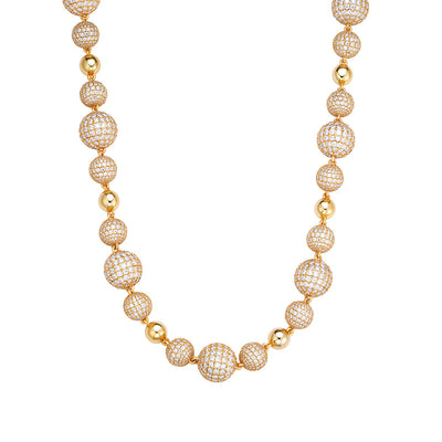 Sterling Silver Round Moissanite Bead Ball Designer Chain 22 Inch Mens Necklace GP 105-5/8 Cttw