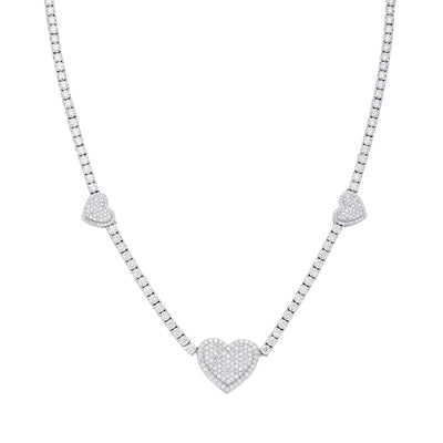 Sterling Silver Round Moissanite 15mm Heart Designer With 3mm Tennis Chain 18 Inch Necklace RP+GP 1-1/3 Cttw