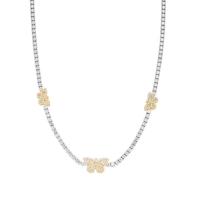 Sterling Silver Round Baguette Moissanite Butterfly Designer 18 Inch Necklace RP+GP 1-5/8 Cttw
