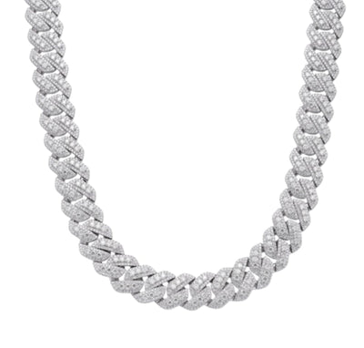 Sterling Silver Round Moissanite 20 Inch Plain Cuban With Iced Out Lock Necklace RP 1/2 Cttw